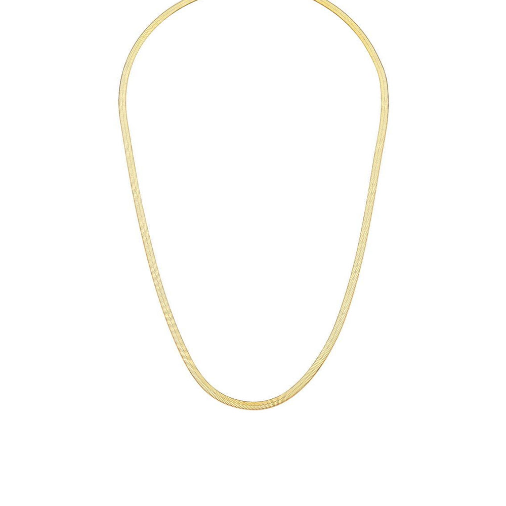 Colar semijoia com banho de ouro 18k. Corrente fita laminada 3 mm de largura, brilho, comprimento de 40 cm com 5 cm de extensor. Fecho lagosta delicado. 1 ano de garantia.